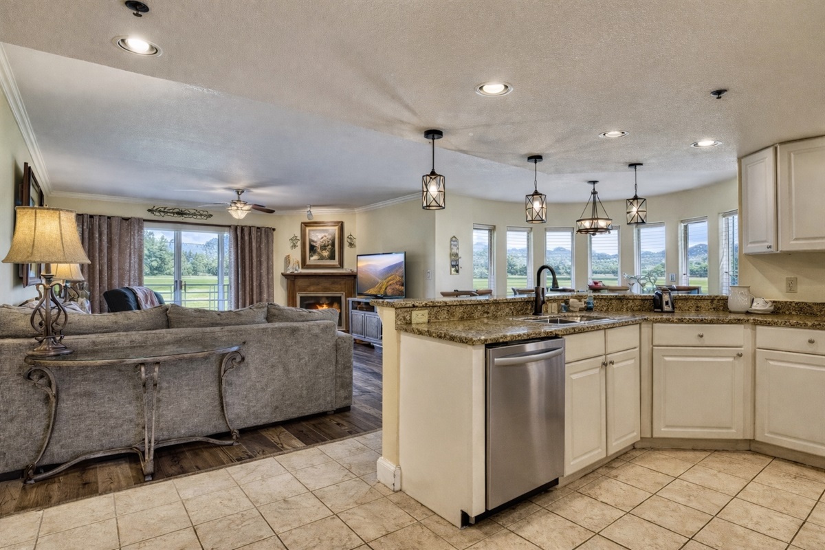 The Dining room is in a gorgeous round alcove with lots of windows. Fully equipped kitchen features all the amenities of home and a rounded bar with additional seating. We also have Keurig Duo coffee maker that uses k-cups or traditional coffee.