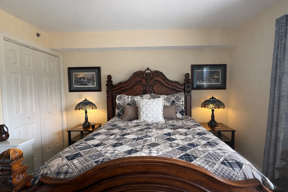 Second bedroom also features a queen bed and is tastefully decorated with a golf theme. It is also equipped with a flat screen cable TV and DVD player.
